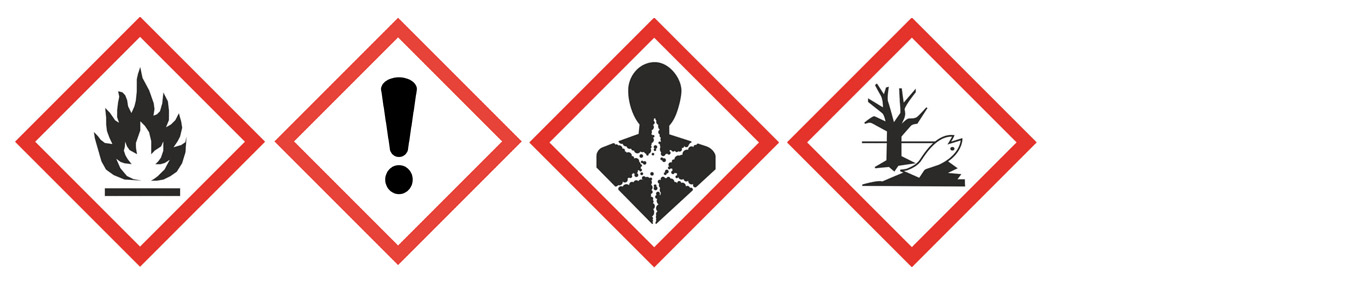 Εύφλεκτο υγρό και ατμός. Προκαλεί ερεθισμό του δέρματος. Μπορεί να προκαλέσει αλλεργικές δερματικές αντιδράσεις. Προκαλεί σοβαρό οφθαλμικό ερεθισμό. Μπορεί να είναι θανατηφόρο εάν καταποθεί και εισέλθει στους αεραγωγούς. Τοξικό για τους υδρόβιους οργανισμούς με μακροχρόνιες επιπτώσεις.